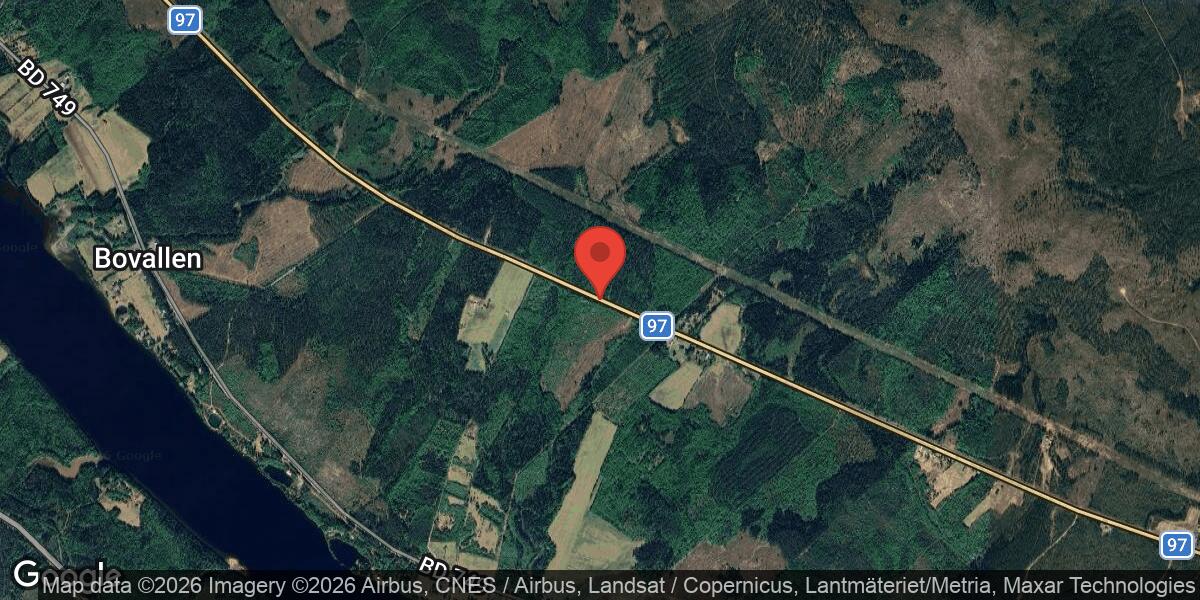 Singelolycka på väg 97 mellan Övre Svartlå och Harads påverkar trafiken